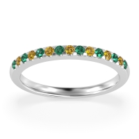 This Citrine wedding ring is casted in 14k White Gold and set with fine quality Citrine and Emerald. All of the gemstones we use are of the top 10% available, those found in fine quality boutiques across the world. This Citrine wedding band can also be added to your collection of minimalist Citrine rings. This Classic Half-eternity Wedding Band Features Stones Extending Halfway Down The Shank. Free shipping, returns, resizing, and a lifetime warranty ensure you love your purchase.