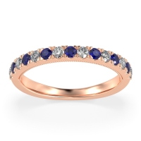 This Lab Diamond wedding ring is casted in 14K Rose Gold and set with fine quality Lab Diamond and Blue Sapphire. All of the gemstones we use are of the top 10% available, those found in fine quality boutiques across the world. This Lab Diamond wedding band can also be added to your collection of minimalist Lab Diamond rings. This Half Eternity Band Features Pave-set Gems with Delicate Milgrain Detail Under The Stones. Free shipping, returns, resizing, and a lifetime warranty ensure you love your purchase.