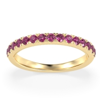 This Pink Tourmaline wedding ring is set with AAAA Pink Tourmaline, amongst the top 10% of material available. This ring can be casted in your choice of 9 metals. Pink Tourmaline rings can be worn as gemstone wedding rings, or can even be stacked with your other gemstone rings. This Half Eternity Band Features Pave-set Gems with Delicate Milgrain Detail Under The Stones. Choose from a variety of gems and metals to make truly unique custom rings! Free shipping, returns, resizing, and a lifetime warranty make choosing this product easy.