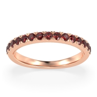 This Ruby wedding ring is set with AAAA Ruby, amongst the top 10% of material available. This ring can be casted in your choice of 9 metals. Ruby rings can be worn as gemstone wedding rings, or can even be stacked with your other gemstone rings. This Half Eternity Band Features Pave-set Gems with Delicate Milgrain Detail Under The Stones. Choose from a variety of gems and metals to make truly unique custom rings! Free shipping, returns, resizing, and a lifetime warranty make choosing this product easy.