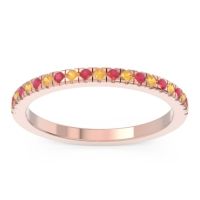 This Citrine wedding ring is casted in 18K Rose Gold and set with fine quality Citrine and Ruby. All of the gemstones we use are of the top 10% available, those found in fine quality boutiques across the world. This Citrine wedding band can also be added to your collection of minimalist Citrine rings. This Ring Features Round Brilliant Gems in A Slender Scalloped Prong Setting Half Way Around The Shank. Free shipping, returns, resizing, and a lifetime warranty ensure you love your purchase.