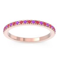 This Ruby wedding ring is casted in 14K Rose Gold and set with fine quality Ruby and Amethyst. All of the gemstones we use are of the top 10% available, those found in fine quality boutiques across the world. This Ruby wedding band can also be added to your collection of minimalist Ruby rings. This Ring Features Round Brilliant Gems in A Slender Scalloped Prong Setting Half Way Around The Shank. Free shipping, returns, resizing, and a lifetime warranty ensure you love your purchase.