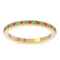 This Ruby wedding ring is casted in 14k Yellow Gold and set with fine quality Ruby and Emerald. All of the gemstones we use are of the top 10% available, those found in fine quality boutiques across the world. This Ruby wedding band can also be added to your collection of minimalist Ruby rings. This Ring Features Round Brilliant Gems in A Slender Scalloped Prong Setting Half Way Around The Shank. Free shipping, returns, resizing, and a lifetime warranty ensure you love your purchase.