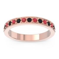 This Ruby wedding ring is casted in 18K Rose Gold and set with fine quality Ruby and Black Onyx. All of the gemstones we use are of the top 10% available, those found in fine quality boutiques across the world. This Ruby wedding band can also be added to your collection of minimalist Ruby rings. This Ring Features Round Brilliant Gems Prong Set Between Two Secure Walls Half Way Around The Shank. Free shipping, returns, resizing, and a lifetime warranty ensure you love your purchase.