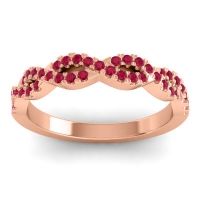 This Ruby wedding ring is set with AAAA Ruby, amongst the top 10% of material available. This ring can be casted in your choice of 9 metals. Ruby rings can be worn as gemstone wedding rings, or can even be stacked with your other gemstone rings. This Band Adds Life To Gem And Metal with Its Organic Design. Your Round Colored Stones Sit in A 4 Prong Scalloped Pave Setting in Two intertwined Strings Across Half The Band. Choose from a variety of gems and metals to make truly unique custom rings! Free shipping, returns, resizing, and a lifetime warranty make choosing this product easy.