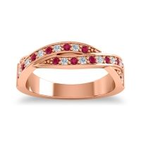 This Ruby wedding ring is casted in 14K Rose Gold and set with fine quality Ruby and Lab Diamond. All of the gemstones we use are of the top 10% available, those found in fine quality boutiques across the world. This Ruby wedding band can also be added to your collection of minimalist Ruby rings. This Timeless Band Gives You The Appearance Of Two Bands Twisted Together. The Band Is Covered By Braided Two Rows Of Round Brilliant Gems Of Your Choice Each Between Secure Walls Around The Upper Half Of The Band in A Shared Prong Setting. Free shipping, returns, resizing, and a lifetime warranty ensure you love your purchase.