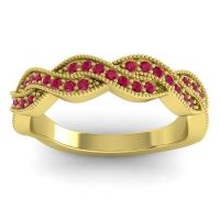 This Ruby wedding ring is set with AAAA Ruby, amongst the top 10% of material available. This ring can be casted in your choice of 9 metals. Ruby rings can be worn as gemstone wedding rings, or can even be stacked with your other gemstone rings. This Contemporary Band Uses Classical Elements To Add Life To Gem And Metal with Its Organic Design. Your Round Colored Stones Sit in A 4 Prong Shared Setting in Two intertwined Strings Encased with Milgrain Across Half The Band. Choose from a variety of gems and metals to make truly unique custom rings! Free shipping, returns, resizing, and a lifetime warranty make choosing this product easy.