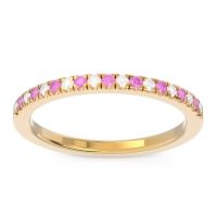 This Diamond wedding ring is casted in 18k Yellow Gold and set with fine quality Diamond and Pink Tourmaline. All of the gemstones we use are of the top 10% available, those found in fine quality boutiques across the world. This Diamond wedding band can also be added to your collection of minimalist Diamond rings. This Band Features Small Round Brilliants Gems Set in A Scalloped Pave Around The Shank. Free shipping, returns, resizing, and a lifetime warranty ensure you love your purchase.