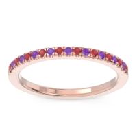 This Ruby wedding ring is casted in 18K Rose Gold and set with fine quality Ruby and Amethyst. All of the gemstones we use are of the top 10% available, those found in fine quality boutiques across the world. This Ruby wedding band can also be added to your collection of minimalist Ruby rings. This Band Features Small Round Brilliants Gems Set in A Scalloped Pave Around The Shank. Free shipping, returns, resizing, and a lifetime warranty ensure you love your purchase.