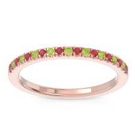 This Ruby wedding ring is casted in 14K Rose Gold and set with fine quality Ruby and Peridot. All of the gemstones we use are of the top 10% available, those found in fine quality boutiques across the world. This Ruby wedding band can also be added to your collection of minimalist Ruby rings. This Band Features Small Round Brilliants Gems Set in A Scalloped Pave Around The Shank. Free shipping, returns, resizing, and a lifetime warranty ensure you love your purchase.