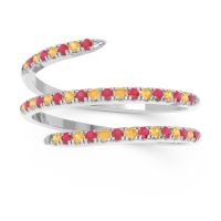 This Ruby and Citrine ring is the perfect addition to you wardrobe. Not only do we use the top 10% of gemstones available, we also make everything right here in New York City. Our Fashion Rings can be added to your collection of dainty rings, or even to your collection of stacking rings. This Ring Features Small Round Brilliants in A Shared Scalloped Prong Setting Half Way Around The Top Of A Modern Wrap Setting. Ditch the worry, embrace the shine with free shipping, returns, resizing and a lifetime warranty.