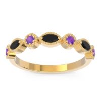 This Black Onyx wedding ring is casted in 14k Yellow Gold and set with fine quality Black Onyx and Amethyst. All of the gemstones we use are of the top 10% available, those found in fine quality boutiques across the world. This Black Onyx wedding band can also be added to your collection of minimalist Black Onyx rings. This Band Features Alternating Rounds Brilliants And Marquise Cuts in A Vintage Style Half Eternity Ring with Milgrain Accents Around The Shank. Free shipping, returns, resizing, and a lifetime warranty ensure you love your purchase.