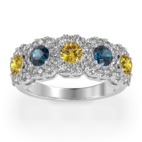 This Palladium Citrine wedding ring features gemstones, along with fine quality London Blue Topaz and Diamond. We only use the top 10% of gemstones available. This women's ring can be worn as a Citrine wedding band, or even as an addition to your Citrine rings collection. Five Prominent 4mm Stones Adorn This Half Eternity Band, Complemented By A Rhythmic Pattern Of Smaller Gem Halos. This product comes with Free Shipping, Free Returns, Free Resize and a lifetime warranty. Choose from a variety of gems and metals to make a truly unique custom band!.