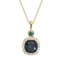This London Blue Topaz and Lab Diamond Necklace is casted in 14k Yellow Gold. This Women’s Halo necklace features exceptionally fine gemstones, on par with those found in the world's most exclusive boutiques and among the top 10% available globally. This Halo Pendant Features A Prominent Cushion-cut Stone, Framed By A Halo Of Smaller Gems. A Bezel-set Stone Adds A Touch Of Modern Elegance, Finished with Delicate Milgrain Detailing. This necklace comes with a complimentary 18-inch chain. Enjoy the confidence of our 30-day, stress-free return policy—with return shipping fully covered. Each piece is also accompanied by a Lifetime Warranty, ensuring lasting beauty and peace of mind.