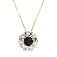 This Black Onyx and Lab Diamond Necklace is casted in 14k Yellow Gold. This Women’s Halo necklace features exceptionally fine gemstones, on par with those found in the world's most exclusive boutiques and among the top 10% available globally. Radiant Floral Pendant with A Central Round Stone Encircled By Smaller Round Stones. A Captivating Design That Evokes Blossoming Beauty. This necklace comes with a complimentary 18-inch chain. Enjoy the confidence of our 30-day, stress-free return policy—with return shipping fully covered. Each piece is also accompanied by a Lifetime Warranty, ensuring lasting beauty and peace of mind.