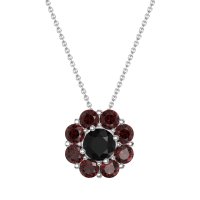 This Black Onyx and Ruby Necklace is casted in 14k White Gold. This Women’s Halo necklace features exceptionally fine gemstones, on par with those found in the world's most exclusive boutiques and among the top 10% available globally. Radiant Floral Pendant with A Central Round Stone Encircled By Smaller Round Stones. A Captivating Design That Evokes Blossoming Beauty. This necklace comes with a complimentary 18-inch chain. Enjoy the confidence of our 30-day, stress-free return policy—with return shipping fully covered. Each piece is also accompanied by a Lifetime Warranty, ensuring lasting beauty and peace of mind.