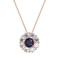 This Blue Sapphire and Lab Diamond Necklace is casted in 14K Rose Gold. This Women’s Halo necklace features exceptionally fine gemstones, on par with those found in the world's most exclusive boutiques and among the top 10% available globally. Radiant Floral Pendant with A Central Round Stone Encircled By Smaller Round Stones. A Captivating Design That Evokes Blossoming Beauty. This necklace comes with a complimentary 18-inch chain. Enjoy the confidence of our 30-day, stress-free return policy—with return shipping fully covered. Each piece is also accompanied by a Lifetime Warranty, ensuring lasting beauty and peace of mind.