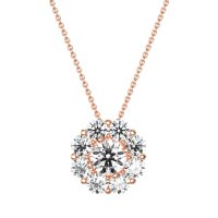 This Diamond and Lab Diamond Necklace is casted in 14K Rose Gold. This Women’s Halo necklace features exceptionally fine gemstones, on par with those found in the world's most exclusive boutiques and among the top 10% available globally. Radiant Floral Pendant with A Central Round Stone Encircled By Smaller Round Stones. A Captivating Design That Evokes Blossoming Beauty. This necklace comes with a complimentary 18-inch chain. Enjoy the confidence of our 30-day, stress-free return policy—with return shipping fully covered. Each piece is also accompanied by a Lifetime Warranty, ensuring lasting beauty and peace of mind.