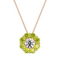 This Lab Diamond and Peridot Necklace is casted in 14K Rose Gold. This Women’s Halo necklace features exceptionally fine gemstones, on par with those found in the world's most exclusive boutiques and among the top 10% available globally. Radiant Floral Pendant with A Central Round Stone Encircled By Smaller Round Stones. A Captivating Design That Evokes Blossoming Beauty. This necklace comes with a complimentary 18-inch chain. Enjoy the confidence of our 30-day, stress-free return policy—with return shipping fully covered. Each piece is also accompanied by a Lifetime Warranty, ensuring lasting beauty and peace of mind.