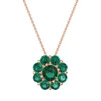 This Lab Emerald and Emerald Necklace is casted in 14K Rose Gold. This Women’s Halo necklace features exceptionally fine gemstones, on par with those found in the world's most exclusive boutiques and among the top 10% available globally. Radiant Floral Pendant with A Central Round Stone Encircled By Smaller Round Stones. A Captivating Design That Evokes Blossoming Beauty. This necklace comes with a complimentary 18-inch chain. Enjoy the confidence of our 30-day, stress-free return policy—with return shipping fully covered. Each piece is also accompanied by a Lifetime Warranty, ensuring lasting beauty and peace of mind.