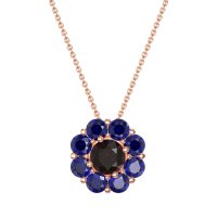 This Lab Ruby and Blue Sapphire Necklace is casted in 18K Rose Gold. This Women’s Halo necklace features exceptionally fine gemstones, on par with those found in the world's most exclusive boutiques and among the top 10% available globally. Radiant Floral Pendant with A Central Round Stone Encircled By Smaller Round Stones. A Captivating Design That Evokes Blossoming Beauty. This necklace comes with a complimentary 18-inch chain. Enjoy the confidence of our 30-day, stress-free return policy—with return shipping fully covered. Each piece is also accompanied by a Lifetime Warranty, ensuring lasting beauty and peace of mind.