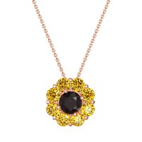 This Lab Ruby and Citrine Necklace is casted in 14K Rose Gold. This Women’s Halo necklace features exceptionally fine gemstones, on par with those found in the world's most exclusive boutiques and among the top 10% available globally. Radiant Floral Pendant with A Central Round Stone Encircled By Smaller Round Stones. A Captivating Design That Evokes Blossoming Beauty. This necklace comes with a complimentary 18-inch chain. Enjoy the confidence of our 30-day, stress-free return policy—with return shipping fully covered. Each piece is also accompanied by a Lifetime Warranty, ensuring lasting beauty and peace of mind.