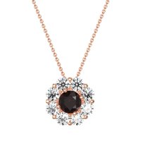 This Lab Ruby and Lab Diamond Necklace is casted in 14K Rose Gold. This Women’s Halo necklace features exceptionally fine gemstones, on par with those found in the world's most exclusive boutiques and among the top 10% available globally. Radiant Floral Pendant with A Central Round Stone Encircled By Smaller Round Stones. A Captivating Design That Evokes Blossoming Beauty. This necklace comes with a complimentary 18-inch chain. Enjoy the confidence of our 30-day, stress-free return policy—with return shipping fully covered. Each piece is also accompanied by a Lifetime Warranty, ensuring lasting beauty and peace of mind.