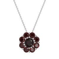 This Ruby Halo Necklace is casted in 14k White Gold. We use only exceptionally fine gemstones, truly on par with those found in the world's most exclusive boutiques and representing the top 10% available globally. Radiant Floral Pendant with A Central Round Stone Encircled By Smaller Round Stones. A Captivating Design That Evokes Blossoming Beauty. You'll get a complimentary 18-inch chain with every necklace. Plus, enjoy a 30-day, hassle-free return policy (we even cover return shipping!) and a Lifetime Warranty for peace of mind.