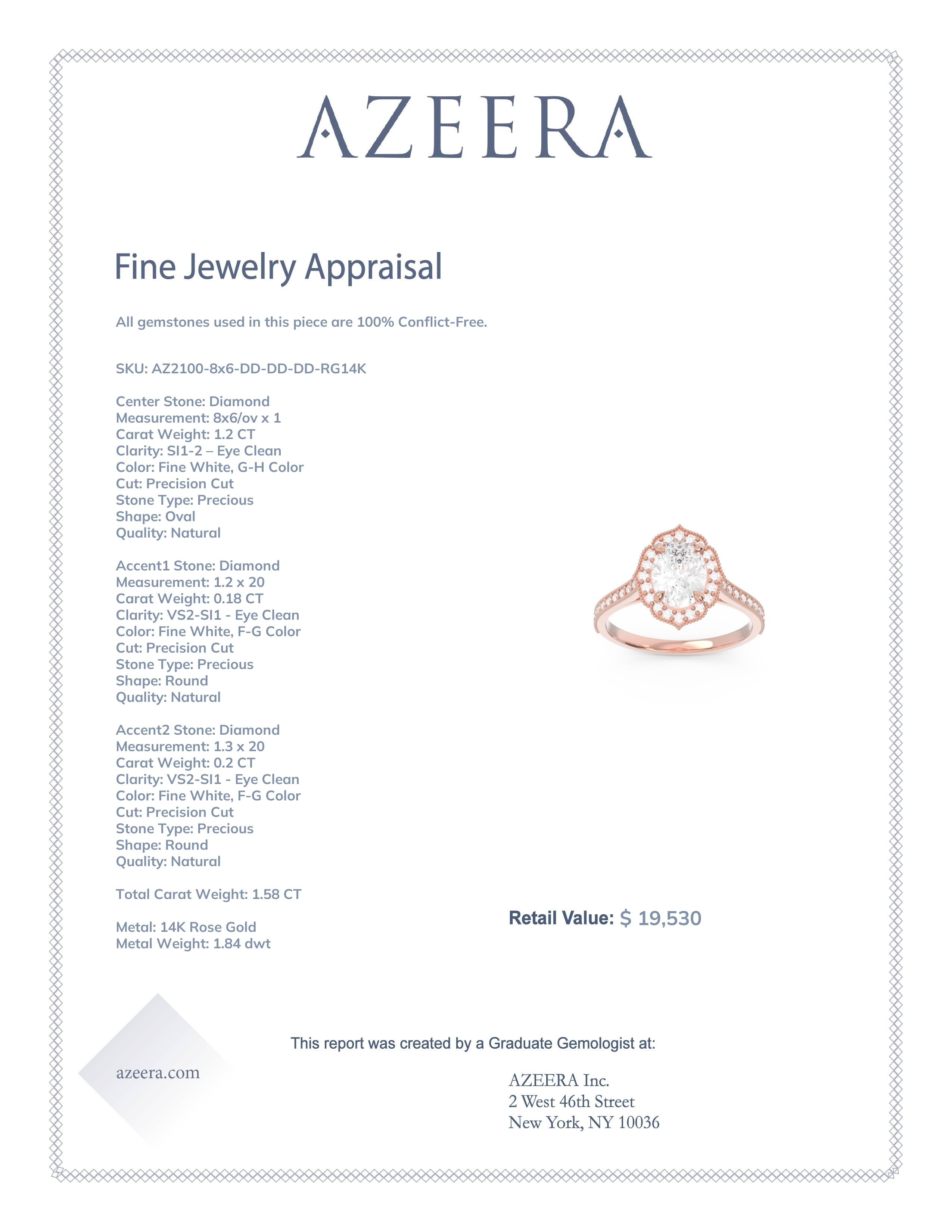 This 14K Rose Gold Diamond ring features a Oval Diamond stone, found across the finest boutiques in the world. We only use gems that are within the top 10% of material available. This ring can be worn as an Diamond engagement ring, or can also be added to your collection of gemstone rings. This Ring Features A Large Oval in A 4 Claw Prong Raised Cathedral Setting Accented with A Petal Halo, Smaller Rounds Around The Shank, And Milgrain Detail. We offer Free Shipping and Free Returns, along with a Free Resize. This ring also comes with a lifetime warranty which covers the integrity of our workmanship forever.
