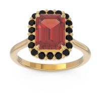 This 18k Yellow Gold Garnet ring features a AAAA Emerald Garnet, along with fine quality Black Onyx. This Ring Features A Large Emerald Cut Gem Surrounded By A Halo Of Small Rounds in A Cathedral Setting. We only use the top 10% of gems available, those found in the finest jewelry shops across the world. This Garnet engagement ring can also be worn as an Garnet and Black Onyx gemstone ring and added to your collection! Enjoy Free Shipping and Returns, Free Resize and a lifetime warranty.