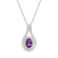 This Amethyst and Lab Diamond Necklace is casted in Palladium. This Women’s Halo necklace features exceptionally fine gemstones, on par with those found in the world's most exclusive boutiques and among the top 10% available globally. This Beautiful Pendant Features A Central Oval Stone Wrapped By A Double Halo Of Smaller Stones, Creating A Captivating And Radiant Design. This necklace comes with a complimentary 18-inch chain. Enjoy the confidence of our 30-day, stress-free return policy—with return shipping fully covered. Each piece is also accompanied by a Lifetime Warranty, ensuring lasting beauty and peace of mind.