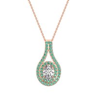 This Diamond and Emerald Necklace is casted in 18K Rose Gold. This Women’s Halo necklace features exceptionally fine gemstones, on par with those found in the world's most exclusive boutiques and among the top 10% available globally. This Beautiful Pendant Features A Central Oval Stone Wrapped By A Double Halo Of Smaller Stones, Creating A Captivating And Radiant Design. This necklace comes with a complimentary 18-inch chain. Enjoy the confidence of our 30-day, stress-free return policy—with return shipping fully covered. Each piece is also accompanied by a Lifetime Warranty, ensuring lasting beauty and peace of mind.