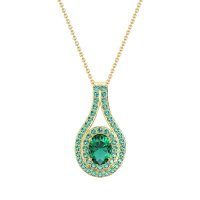This Emerald Halo Necklace is casted in 14k Yellow Gold. We use only exceptionally fine gemstones, truly on par with those found in the world's most exclusive boutiques and representing the top 10% available globally. This Beautiful Pendant Features A Central Oval Stone Wrapped By A Double Halo Of Smaller Stones, Creating A Captivating And Radiant Design. You'll get a complimentary 18-inch chain with every necklace. Plus, enjoy a 30-day, hassle-free return policy (we even cover return shipping!) and a Lifetime Warranty for peace of mind.