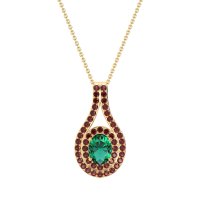 This Emerald and Ruby Necklace is casted in 14k Yellow Gold. This Women’s Halo necklace features exceptionally fine gemstones, on par with those found in the world's most exclusive boutiques and among the top 10% available globally. This Beautiful Pendant Features A Central Oval Stone Wrapped By A Double Halo Of Smaller Stones, Creating A Captivating And Radiant Design. This necklace comes with a complimentary 18-inch chain. Enjoy the confidence of our 30-day, stress-free return policy—with return shipping fully covered. Each piece is also accompanied by a Lifetime Warranty, ensuring lasting beauty and peace of mind.