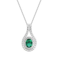 This Lab Emerald and Lab Diamond Necklace is casted in Palladium. This Women’s Halo necklace features exceptionally fine gemstones, on par with those found in the world's most exclusive boutiques and among the top 10% available globally. This Beautiful Pendant Features A Central Oval Stone Wrapped By A Double Halo Of Smaller Stones, Creating A Captivating And Radiant Design. This necklace comes with a complimentary 18-inch chain. Enjoy the confidence of our 30-day, stress-free return policy—with return shipping fully covered. Each piece is also accompanied by a Lifetime Warranty, ensuring lasting beauty and peace of mind.