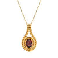 This Ruby and Citrine Necklace is casted in 14k Yellow Gold. This Women’s Halo necklace features exceptionally fine gemstones, on par with those found in the world's most exclusive boutiques and among the top 10% available globally. This Beautiful Pendant Features A Central Oval Stone Wrapped By A Double Halo Of Smaller Stones, Creating A Captivating And Radiant Design. This necklace comes with a complimentary 18-inch chain. Enjoy the confidence of our 30-day, stress-free return policy—with return shipping fully covered. Each piece is also accompanied by a Lifetime Warranty, ensuring lasting beauty and peace of mind.