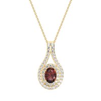 This Ruby and Diamond Necklace is casted in 14k Yellow Gold. This Women’s Halo necklace features exceptionally fine gemstones, on par with those found in the world's most exclusive boutiques and among the top 10% available globally. This Beautiful Pendant Features A Central Oval Stone Wrapped By A Double Halo Of Smaller Stones, Creating A Captivating And Radiant Design. This necklace comes with a complimentary 18-inch chain. Enjoy the confidence of our 30-day, stress-free return policy—with return shipping fully covered. Each piece is also accompanied by a Lifetime Warranty, ensuring lasting beauty and peace of mind.