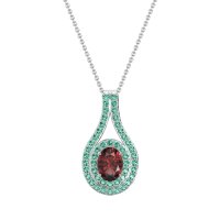 This Ruby and Emerald Necklace is casted in Platinum. This Women’s Halo necklace features exceptionally fine gemstones, on par with those found in the world's most exclusive boutiques and among the top 10% available globally. This Beautiful Pendant Features A Central Oval Stone Wrapped By A Double Halo Of Smaller Stones, Creating A Captivating And Radiant Design. This necklace comes with a complimentary 18-inch chain. Enjoy the confidence of our 30-day, stress-free return policy—with return shipping fully covered. Each piece is also accompanied by a Lifetime Warranty, ensuring lasting beauty and peace of mind.