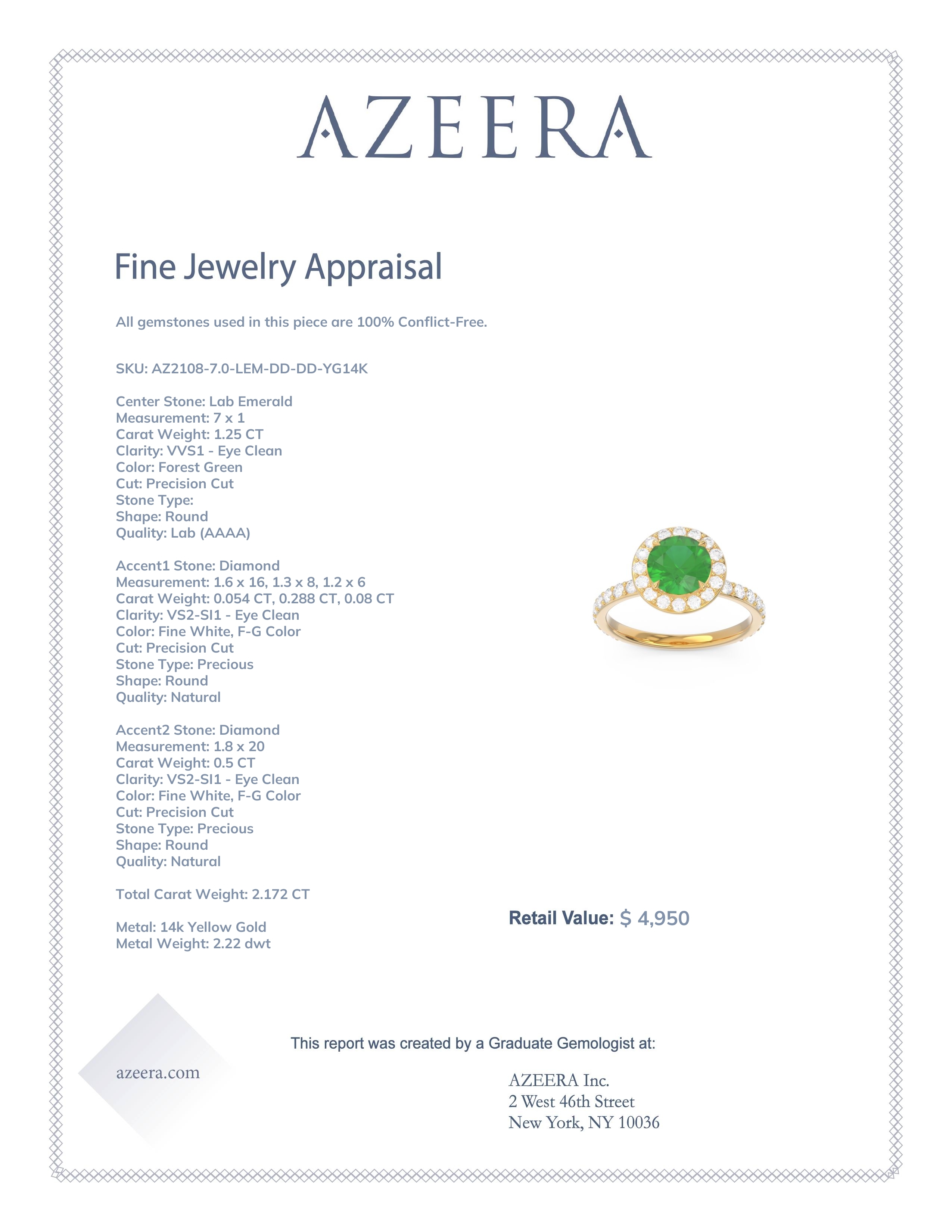 Item (SKU): AZ2108-7.0-LEM-DD-DD-YG14K