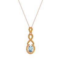 This Aquamarine and Citrine Necklace is casted in 14K Rose Gold. This Women’s Fashion necklace features exceptionally fine gemstones, on par with those found in the world's most exclusive boutiques and among the top 10% available globally. This Pendant Features An Oval Stone Surrounded By A Halo That Seamlessly Transitions into An infinity Symbol. A Modern And Elegant Design. This necklace comes with a complimentary 18-inch chain. Enjoy the confidence of our 30-day, stress-free return policy—with return shipping fully covered. Each piece is also accompanied by a Lifetime Warranty, ensuring lasting beauty and peace of mind.