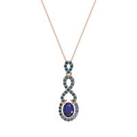 This Blue Sapphire and London Blue Topaz Necklace is casted in 14K Rose Gold. This Women’s Fashion necklace features exceptionally fine gemstones, on par with those found in the world's most exclusive boutiques and among the top 10% available globally. This Pendant Features An Oval Stone Surrounded By A Halo That Seamlessly Transitions into An infinity Symbol. A Modern And Elegant Design. This necklace comes with a complimentary 18-inch chain. Enjoy the confidence of our 30-day, stress-free return policy—with return shipping fully covered. Each piece is also accompanied by a Lifetime Warranty, ensuring lasting beauty and peace of mind.