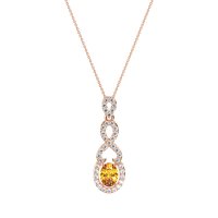 This Citrine and Lab Diamond Necklace is casted in 14K Rose Gold. This Women’s Fashion necklace features exceptionally fine gemstones, on par with those found in the world's most exclusive boutiques and among the top 10% available globally. This Pendant Features An Oval Stone Surrounded By A Halo That Seamlessly Transitions into An infinity Symbol. A Modern And Elegant Design. This necklace comes with a complimentary 18-inch chain. Enjoy the confidence of our 30-day, stress-free return policy—with return shipping fully covered. Each piece is also accompanied by a Lifetime Warranty, ensuring lasting beauty and peace of mind.