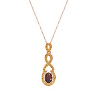 This Garnet and Citrine Necklace is casted in 14K Rose Gold. This Women’s Fashion necklace features exceptionally fine gemstones, on par with those found in the world's most exclusive boutiques and among the top 10% available globally. This Pendant Features An Oval Stone Surrounded By A Halo That Seamlessly Transitions into An infinity Symbol. A Modern And Elegant Design. This necklace comes with a complimentary 18-inch chain. Enjoy the confidence of our 30-day, stress-free return policy—with return shipping fully covered. Each piece is also accompanied by a Lifetime Warranty, ensuring lasting beauty and peace of mind.