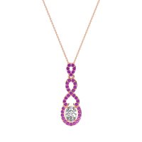 This Lab Diamond and Amethyst Necklace is casted in 14K Rose Gold. This Women’s Fashion necklace features exceptionally fine gemstones, on par with those found in the world's most exclusive boutiques and among the top 10% available globally. This Pendant Features An Oval Stone Surrounded By A Halo That Seamlessly Transitions into An infinity Symbol. A Modern And Elegant Design. This necklace comes with a complimentary 18-inch chain. Enjoy the confidence of our 30-day, stress-free return policy—with return shipping fully covered. Each piece is also accompanied by a Lifetime Warranty, ensuring lasting beauty and peace of mind.