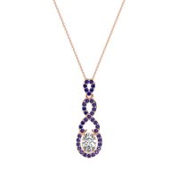 This Lab Diamond and Blue Sapphire Necklace is casted in 14K Rose Gold. This Women’s Fashion necklace features exceptionally fine gemstones, on par with those found in the world's most exclusive boutiques and among the top 10% available globally. This Pendant Features An Oval Stone Surrounded By A Halo That Seamlessly Transitions into An infinity Symbol. A Modern And Elegant Design. This necklace comes with a complimentary 18-inch chain. Enjoy the confidence of our 30-day, stress-free return policy—with return shipping fully covered. Each piece is also accompanied by a Lifetime Warranty, ensuring lasting beauty and peace of mind.