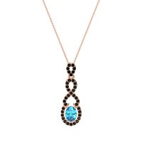 This Swiss Blue Topaz and Black Onyx Necklace is casted in 14K Rose Gold. This Women’s Fashion necklace features exceptionally fine gemstones, on par with those found in the world's most exclusive boutiques and among the top 10% available globally. This Pendant Features An Oval Stone Surrounded By A Halo That Seamlessly Transitions into An infinity Symbol. A Modern And Elegant Design. This necklace comes with a complimentary 18-inch chain. Enjoy the confidence of our 30-day, stress-free return policy—with return shipping fully covered. Each piece is also accompanied by a Lifetime Warranty, ensuring lasting beauty and peace of mind.