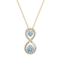 This Aquamarine and Lab Diamond Necklace is casted in 14k Yellow Gold. This Women’s Fashion necklace features exceptionally fine gemstones, on par with those found in the world's most exclusive boutiques and among the top 10% available globally. Elegant Pendant with Two Central, Round-cut Stones And An infinity Halo Of Smaller Stones Around. Crafted in A Sleek Metal Setting, It Offers A Sophisticated Touch. This necklace comes with a complimentary 18-inch chain. Enjoy the confidence of our 30-day, stress-free return policy—with return shipping fully covered. Each piece is also accompanied by a Lifetime Warranty, ensuring lasting beauty and peace of mind.