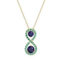 This Blue Sapphire and Emerald Necklace is casted in 14k Yellow Gold. This Women’s Fashion necklace features exceptionally fine gemstones, on par with those found in the world's most exclusive boutiques and among the top 10% available globally. Elegant Pendant with Two Central, Round-cut Stones And An infinity Halo Of Smaller Stones Around. Crafted in A Sleek Metal Setting, It Offers A Sophisticated Touch. This necklace comes with a complimentary 18-inch chain. Enjoy the confidence of our 30-day, stress-free return policy—with return shipping fully covered. Each piece is also accompanied by a Lifetime Warranty, ensuring lasting beauty and peace of mind.