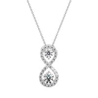 This Diamond and Lab Diamond Necklace is casted in Palladium. This Women’s Fashion necklace features exceptionally fine gemstones, on par with those found in the world's most exclusive boutiques and among the top 10% available globally. Elegant Pendant with Two Central, Round-cut Stones And An infinity Halo Of Smaller Stones Around. Crafted in A Sleek Metal Setting, It Offers A Sophisticated Touch. This necklace comes with a complimentary 18-inch chain. Enjoy the confidence of our 30-day, stress-free return policy—with return shipping fully covered. Each piece is also accompanied by a Lifetime Warranty, ensuring lasting beauty and peace of mind.
