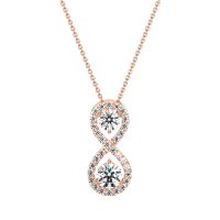 This Diamond and Lab Diamond Necklace is casted in 14K Rose Gold. This Women’s Fashion necklace features exceptionally fine gemstones, on par with those found in the world's most exclusive boutiques and among the top 10% available globally. Elegant Pendant with Two Central, Round-cut Stones And An infinity Halo Of Smaller Stones Around. Crafted in A Sleek Metal Setting, It Offers A Sophisticated Touch. This necklace comes with a complimentary 18-inch chain. Enjoy the confidence of our 30-day, stress-free return policy—with return shipping fully covered. Each piece is also accompanied by a Lifetime Warranty, ensuring lasting beauty and peace of mind.